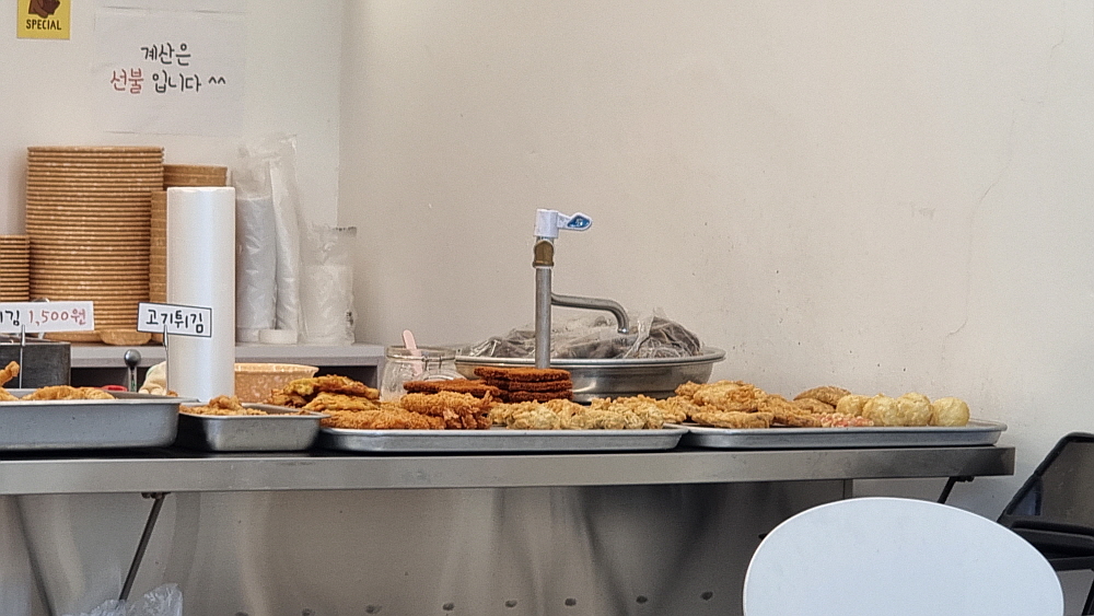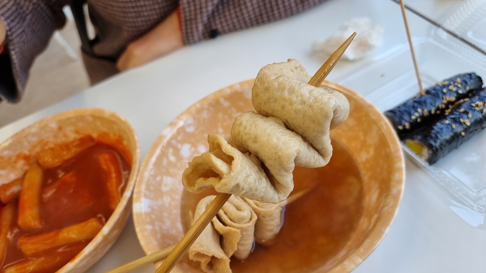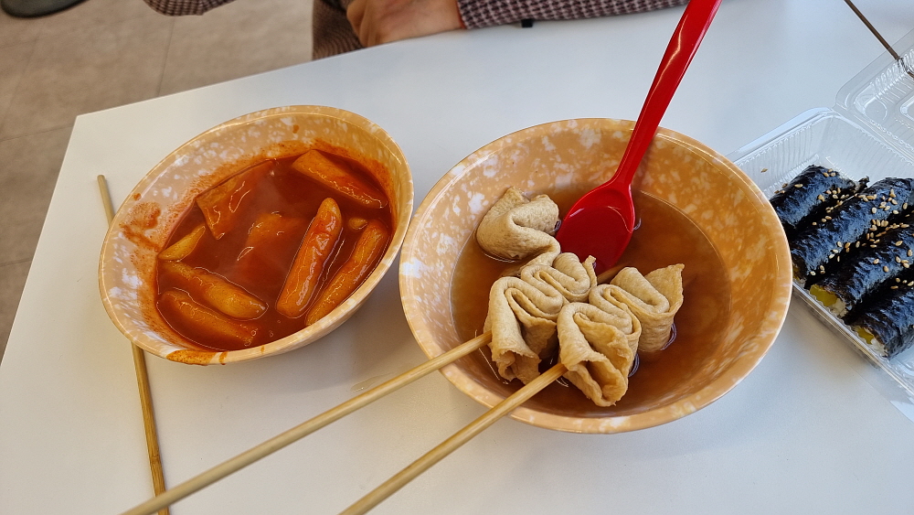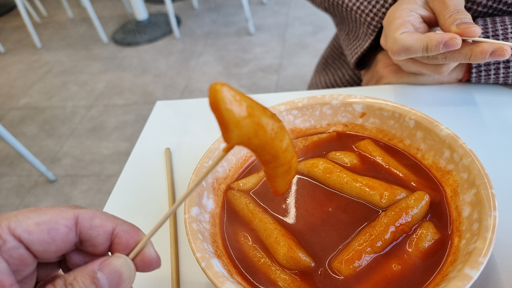 그런데 자세히 보니 이것도 체인점이었다. 이렇게 착한 가격을 고수하는 체인점이 있다는 것도 놀라웠다. 가게 안은 주방이 별도 만들어지지 않은 깔끔한 구조였다. 하긴 여기서 대단한 요리를 만드는 것은 아니니 이런 가게 인테리어도 수긍이 간다. 처음 계획대로 떡볶이와 오뎅, 그리고 꼬마김밥을 주문했지만 값은 7,000원 밖에 안 된다. 메뉴판에 있는 피카추라는 음식이 뭔지는 모르겠지만 맛이 좋다면 다음엔 순대와 튀김도 먹어 보리라 생각했다. 단촐한 듯 하면서 우리에게 너무나 익숙한 음식들이 나오기 시작했다.
