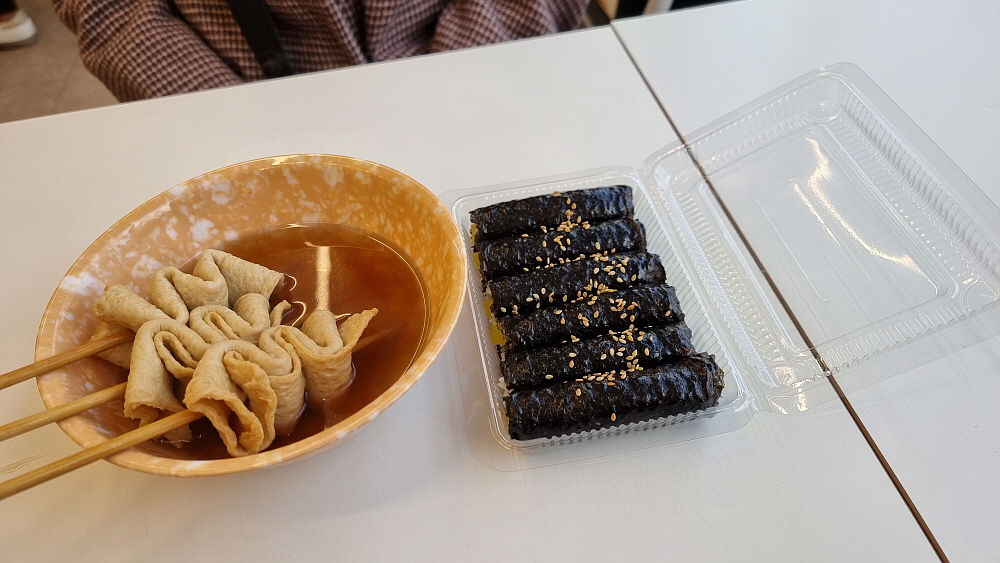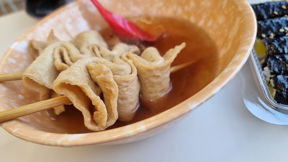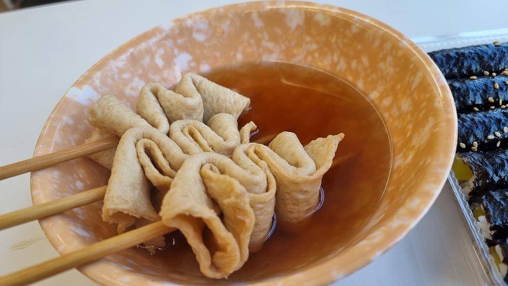 가격이 착하기 때문에 물이나 음료나 손님이 갖다 먹어야 하고, 다 먹은 후 그릇도 손님이 치워야 하는 방식이었다. 하지만 누가 그것을 불편해 하겠는가? 이런 가격인데 말이다. 오뎅은 세줄에 2,000원이라는 애매한 가격이라 둘이 가면 누군가가 두 개를 먹게 된다. 여긴 세명이 오는 것이 정답일까? 꼬마김밥의 안에는 단무지외에 들어간 내용물이 없다. 그런데 희안하게도 맛이 좋다. 이건 정말 예전에 먹었던 그 꼬마김밥의 맛이었다. 아마도 밥에 양념을 잘 한 모양이다. 이렇게 단촐한 김밥도 없어서 못 먹던 시절이 있었다. 아 옛날이여~