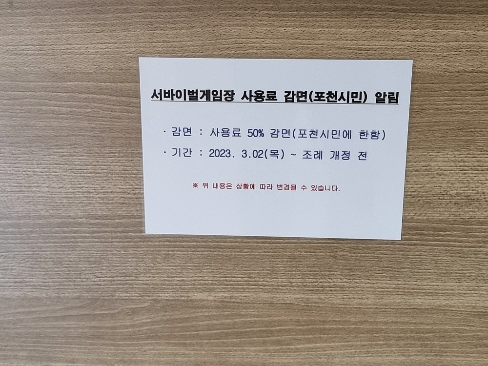 시설이 좋기 때문에 멀리서도 사람들이 찾아 온다고 한다. 하긴 이런 시설을 갖춘 경기장이 흔한 것은 아니다. 이용료가 10,000원이지만 포천시민의 경우는 50% 할인하여 5,000원이면 된다. 과거엔 매주 화요일에 휴장을 하기도 했지만 현재는 휴일없이 운영한다고 했다. 경기장 접수대 옆에는 2,000원을 내면 할 수 있는 비비탄 사격연습대도 있다. 유원지나 오락실에서 보던 그것과 비슷하지만 이것 역시도 레이져빔이 나가는 첨단시설이다.