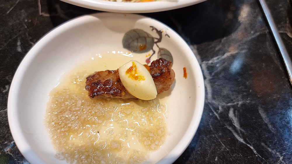 그리고 이번에 알게 된 사실인데 소고기에 김치를 얹어 먹으면 그것도 아주 좋은 궁합이다. 굳이 소고기 맛을 김치로 지울 필요가 있느냐고 할 사람도 있겠지만 푹 익은 김치와 기름진 소고기의 궁합이 개인적으로 꽤나 괜찮았다. 밥 반찬으로도 말이다. 하긴 소고기에 뭔들 안 어울릴까? 한 시간 남짓 있는 동안 계산서의 무게가 점점 압박으로 느껴지는 순간이었다. 그래도 맛이 좋은 것을 어쩌랴~ 소고기 만찬은 드라마나 영화에서도 특별한 날 즐기는 그런 특별한 포상이다. 이날이 그랬다. 작년 한 해 열심히 일한 당신~ 소고기 먹어라!