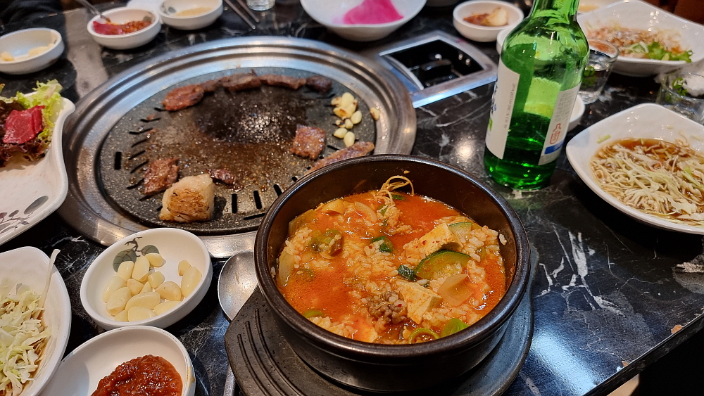 누가 먼저랄 것도 없이 우린 부지런히 젖가락 질을 했고, 먹다 보니 한 근의 소고기는 절대 많은 양이 아니라는 것을 이번에 다시 알게 되었다. 잘 익은 소고기를 태우는 화를 당하지 않으려고 무척이나 애를 썼다. 소주는 제대로 먹지도 못했는데 비싼 안주가 바닥이 나 버렸기 때문에 밥 안주로 나머지 술 배를 채우기 위해 된장찌개를 주문했다. 거기에 밥을 말아서 불판에 올려 놓으면 그 유명한 된장찌개 밥 안주가 되는 것이다. 이것도 나쁘지 않다. 소고기의 기름진 맛이 된장찌개의 구수한 맛과 만나 상쇄되는 느낌이 들었다. 역시 한국 사람은 된장찌개다.