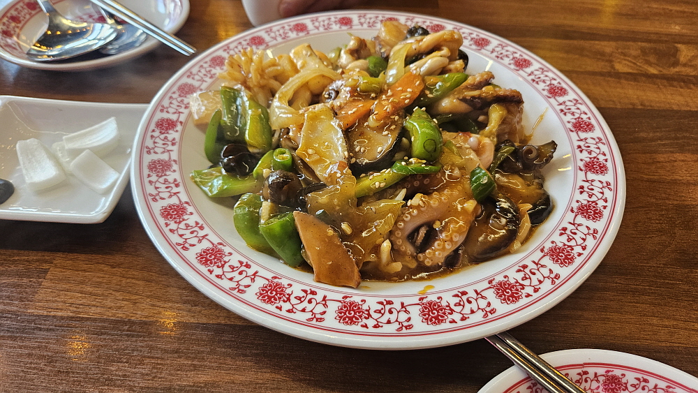 이집의 가성비는 꽤나 좋은 편이었다. 정확하기 기억이 나지는 않지만 팔보채 중간 사이즈이 가격이 3만원이 안 되는 가격이었던 것 같다. 그런데 맛이 좋다. 전문가의 솜씨가 느껴지는 제대로 된 웍질의 맛이다. 쭈꾸미나 야채도 넉넉하게 들어간 편이다. 이런 구성에 이 정도 가격이라면 분명 착한 식당이 맞다. 이런 안주를 진작부터 원했다. 양은 많지 않지만 어떤 술과도 궁합이 맞는 전천후 음식말이다. 거기에 적당한 기름기와 달달함, 매콤함을 두루 갖춘 정말 안주계의 강자가 맞다. 우리는 이런 저런 이야기들을 나누며 이 시간의 고량주와 팔보채를 여유있게 느끼면 즐길 수 있었다.