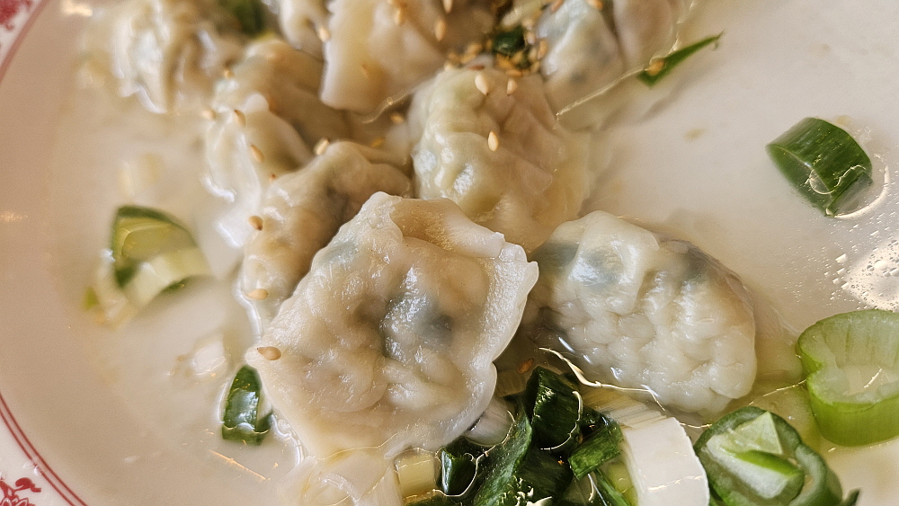 중간 사이즈이 연태 고량주 두병을 먹기 위해서는 팔보채 하나 만으로는 부족하여 나중에 물만두를 추가하기는 했다. 보통 물만두를 주문하면 그냥 물에 데친 만두를 물기없이 건조하게 가지고 오는데 여긴 아니었다. 만두를 삶은 물에 간단하지만 파를 토핑으로 얹어 내왔다. 5천원 짜리 물만두도 이렇게 정성을 들이다니 참 고마운 일이다. 이것도 그냥 간단하게 먹어치우는 간식같은 음식이 아니라 어엿한 안주로서의 격을 갖춘 음식이 되었다. 이집은 오랫동안 기억에 남을 것 같다. 가성비 좋고, 분위기 좋고, 맛 좋고, 서비스도 좋다. 이런 회식이 성지는 자주 오는 것이 예의일 것이다.