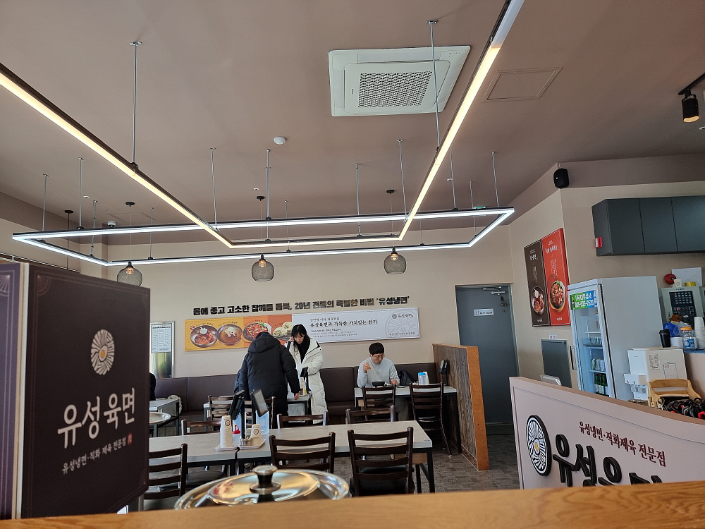 우리가 방문했을 때는 오픈기념으로 메뉴들을 조금 싸게 팔고 있었다. 43번 국도변에 위치한 노출도 좋은 곳이기 때문에 가성비만 좋다면 분명 승산이 있을 만한 곳이다. 오픈 기념으로 순대국을 단돈 6천 원에 팔고 있었다. 당연히 순대국은 먹어봐야겠지만 그래도 시그니쳐 메뉴인 냉면도 놓치지 싫었다. 그래서 우린 두 가지를 모두 주문했다. 아직은 가격에 부담이 없으니 이런 선택에 전혀 부담이 가지 않았다. 새로 만든 식당이기에 실내 인테리어는 아주 깔끔했다. 여긴 예전에 커피집이었던 곳으로 한동안 장사를 하지 않았던 곳이다.