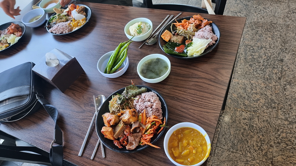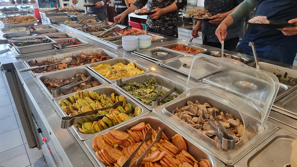 미역국까지 떠 먹으니 생일상 같기도 하다. 부페에서 밥을 먹으면 아무래도 과식을 하게 된다. 조금만 무리하면 음식을 남길지도 모른다. 다른 손님들이야 익숙하게 갖다 먹는 모습이지만 아무래도 우린 처음이다 보니 뭐가 어디에 있는지 몰라 몇 번을 반찬이 있는 곳에 갔다 왔다 했다. 이 가격에 이렇게 많은 반찬을 만들어도 뭐가 남길래 장사를 하겠지? 그게 참 신기하다. 요즘은 국수 한 그릇도 저 가격을 받는 곳이 많은데 말이다. 과연 규모의 경제란 놀라운 것일까? 그래서 우리 같은 직장인들이 혜택을 보긴 하지만 말이다. 푸짐하니 정말 과하게 먹을 수 있는 식당이다.