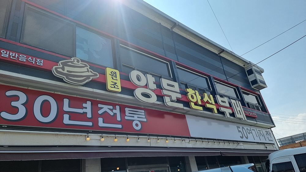 예전엔 미처 몰랐는데 포천엔 정말 많은 한식부페 집이 있다. 아마도 사업장에서 일하는 사람들을 위한 구내 식당 같은 느낌의 식당인 것 같은데 눈을 크게 뜨고 찾아 보니 주변에 여기 저기 많더라는... 이날은 43번 국도변의 한식부페를 찾았다. 이 길은 참 자주 다니는 길인데 우연한 기회에 여기에 유명하다는 한식부페가 있다는 것을 알게 되었다. 이름은 양문 한식부페이다. 말 그대로 예전엔 양문에서 영업을 하던 집이란다. 거기서 나음의 유명세를 얻은 뒤 지금의 자리로 나름 확장하여 진출한 것이라 할 수 있겠다. 여긴 점심시간이면 차를 세우기 힘들 정도로 손님이 몰려 든다.