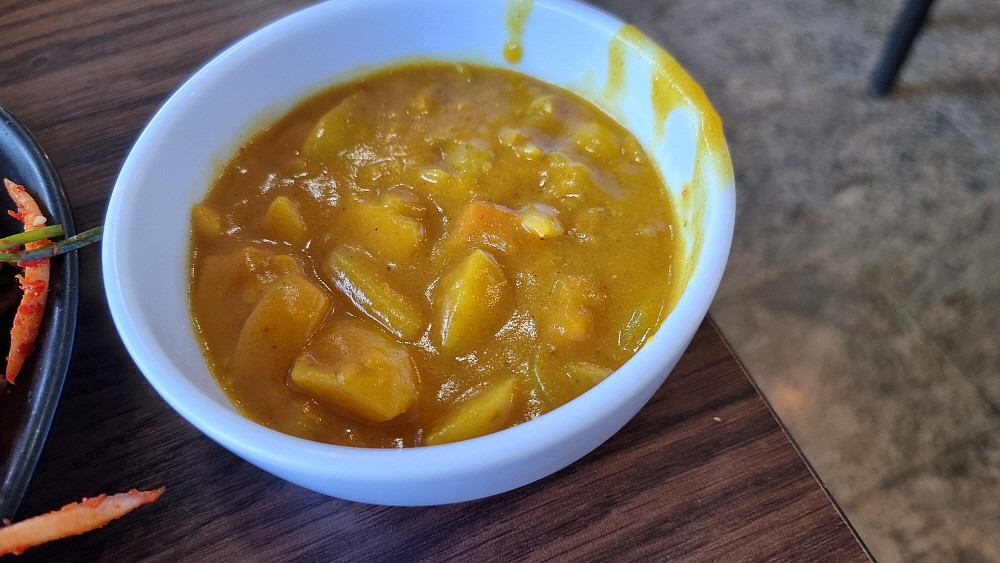 그리고 이날의 특별식은 카레였다. 집에서 가끔 해 먹어 익숙한 음식이지만 이렇게 밖에서 만나니 여간 반간운 것이 아니다. 이렇게 한접시 가득 밥과 반찬을 가지고 오면 드디어 식사 시작이다. 흔한 것 같지만 만들기는 쉽지 않은 나물을 위주로 반찬을 구성했다. 코다리 조림도 가지고 왔다. 이런 식으로 먹으면 다 살이 될 것 같은데 또 매일 먹다보면 질리기도 할 것이다. 한식부페는 매일 가기는 그렇고 일주일에 한 두번 정도가 딱 맞는 것 같다. 다양한 반찬을 섭렵한다는 점에서 가끔은 와야 할 것 같은 곳이다. 간이 좀 센 편이긴 하지만 그래도 이 정도면 솜씨가 좋은 주방장이다.