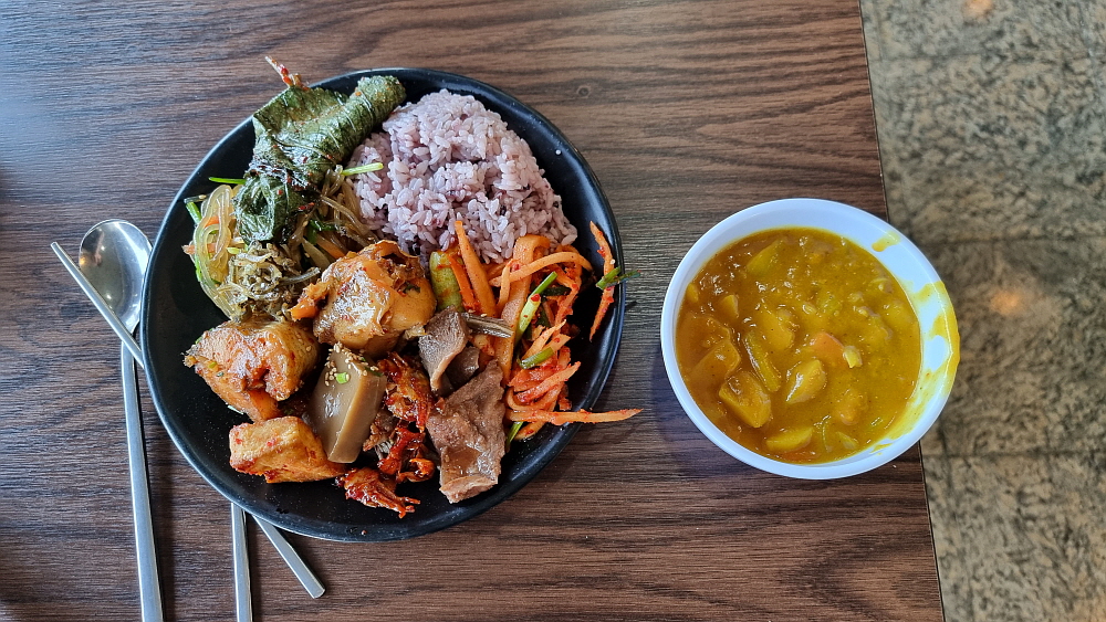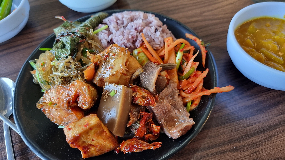 그리고 이날의 특별식은 카레였다. 집에서 가끔 해 먹어 익숙한 음식이지만 이렇게 밖에서 만나니 여간 반간운 것이 아니다. 이렇게 한접시 가득 밥과 반찬을 가지고 오면 드디어 식사 시작이다. 흔한 것 같지만 만들기는 쉽지 않은 나물을 위주로 반찬을 구성했다. 코다리 조림도 가지고 왔다. 이런 식으로 먹으면 다 살이 될 것 같은데 또 매일 먹다보면 질리기도 할 것이다. 한식부페는 매일 가기는 그렇고 일주일에 한 두번 정도가 딱 맞는 것 같다. 다양한 반찬을 섭렵한다는 점에서 가끔은 와야 할 것 같은 곳이다. 간이 좀 센 편이긴 하지만 그래도 이 정도면 솜씨가 좋은 주방장이다.