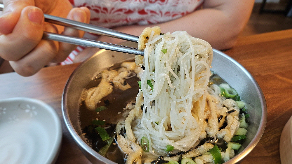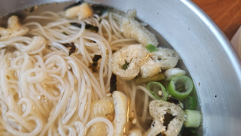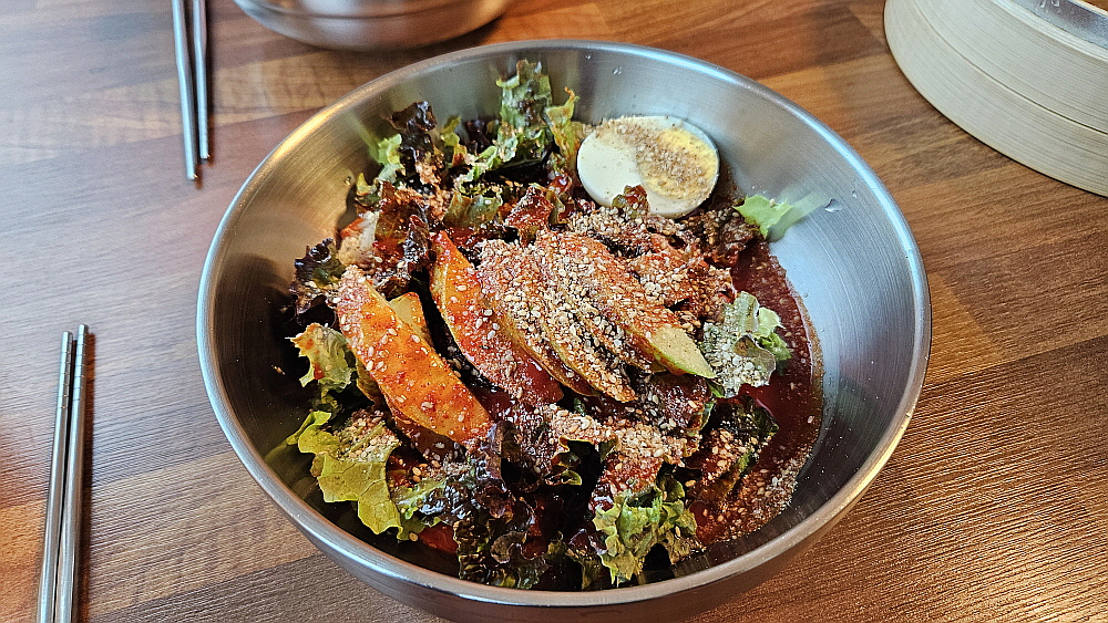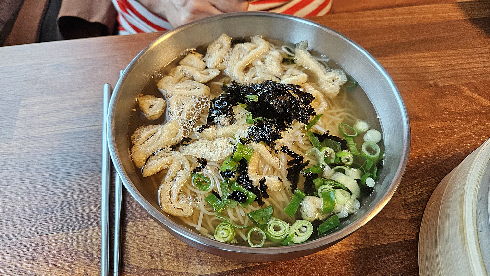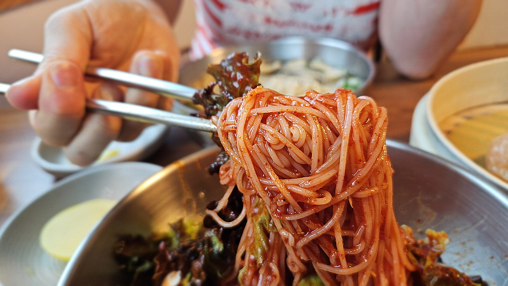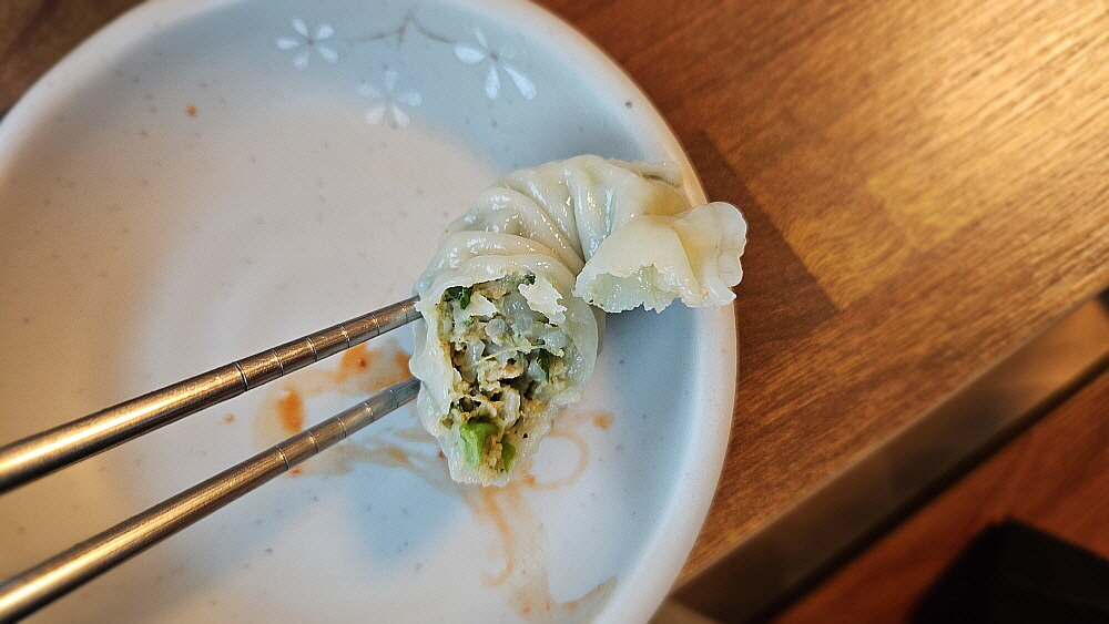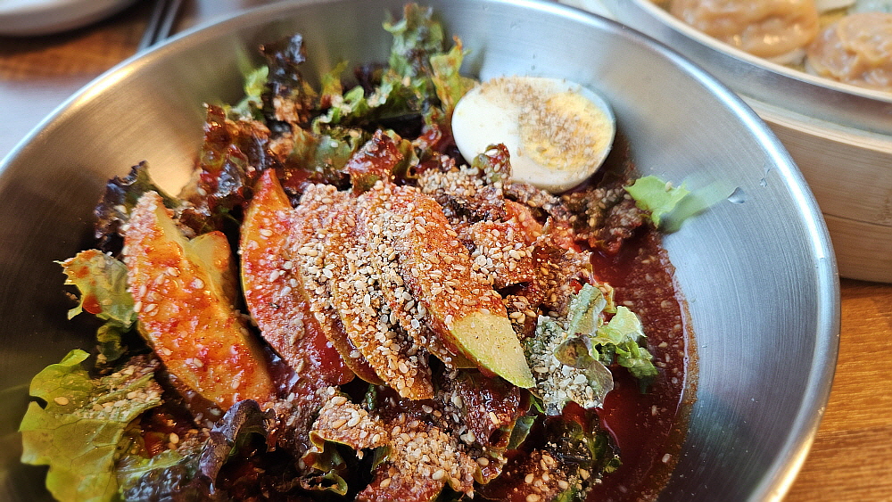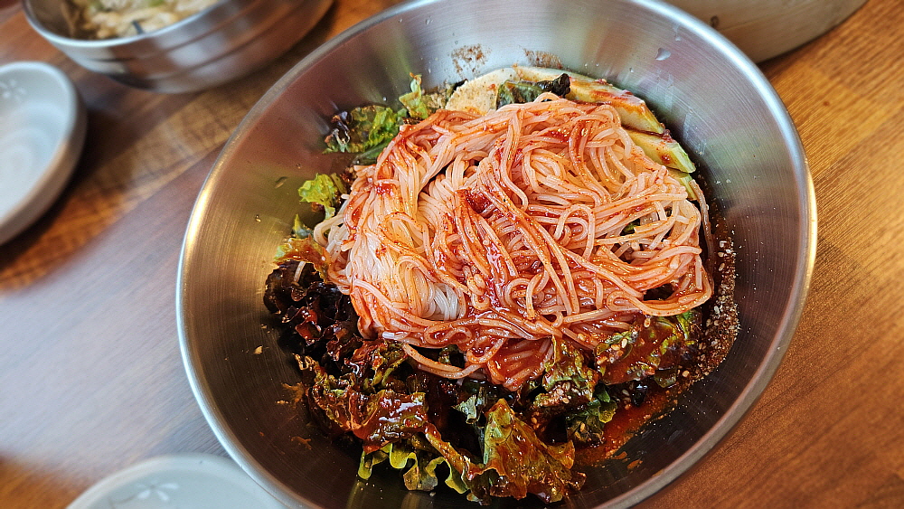 비가오는 날씨 때문인지 잔치국수가 무척이나 먹음직스러웠다. 잔치국수는 한국인의 소울푸드 중에 하나인지라 어디서 만나도 정말 반가운 음식이다. 국수먹는 날은 뭔가 즐겁고, 행복한 일이 있는 날 아니던가! 유부가 듬뿍 들어간 푸짐한 국수 한 그릇에 마음이 그냥 행복해지는 기분이었다. 일반적인 소면에 진한 국물이 일품이었다. 비빔국수는 예전에 먹었던 것처럼 꽤나 달달한 편이었다. 조금 과하다 할 정도로 달달했는데 단 것을 싫어하는 사람에게는 불호의 맛이 될 수도 있을 것 같았다. 만두가 일품이었는데 기대 하지 않고 먹었다가 감동을 받았다.