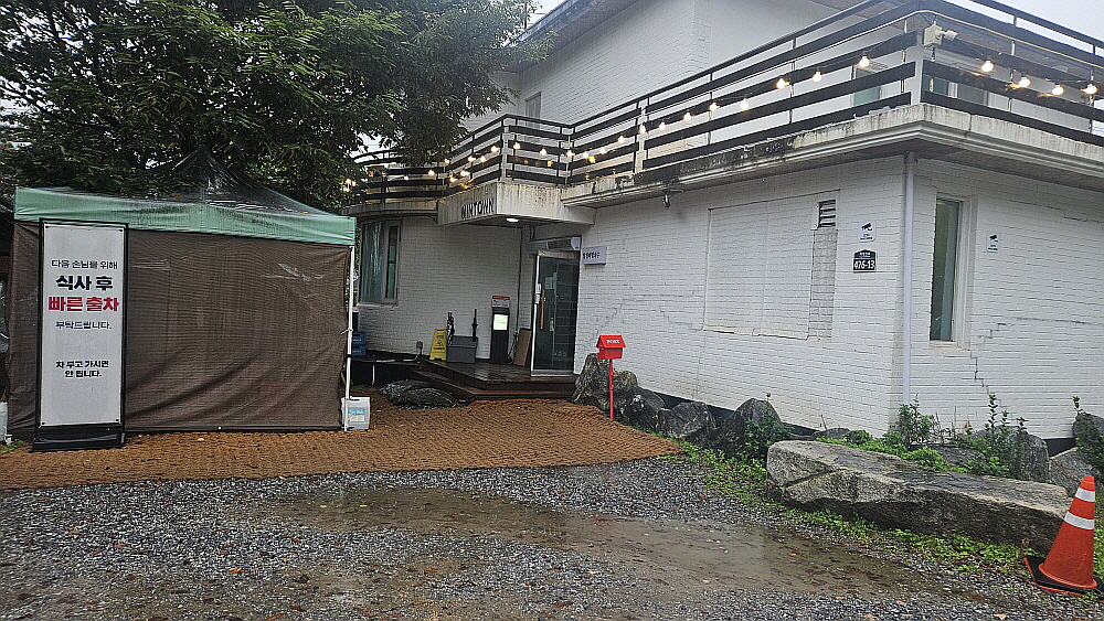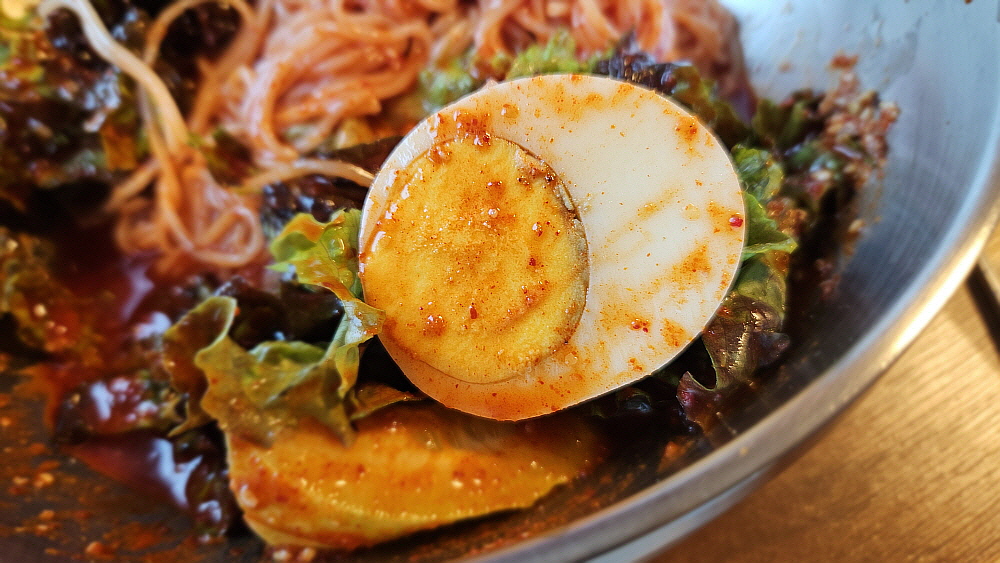 비빔국수의 맛이 어딘가 익숙하다 싶었는데 가만히 생각해 보니 망향비빔국수와도 비슷한 맛인 것 같았다. 김치말이 국수 같은 느낌의 비빔국수로 젊은 취향의 맛이라 하겠다. 비빔국수 한 그릇 먹으면서 젊은 취향, 늙은 취향을 따지다니... 암튼 우리는 호젓한 분위기의 실내에서 조용히 내리는 비를 감상하면서 국수를 먹었다. 방송에서 본 장면을 재연이라도 할 요량으로 열심히 먹었다. 생각해 보면 고모리는 정말 식당이 여기 저기 많은 것 같다. 우리가 그렇게 고모리를 돌아 다녔지만 여기 비빔국수 집이 있는줄 잘 몰랐으니 말이다.