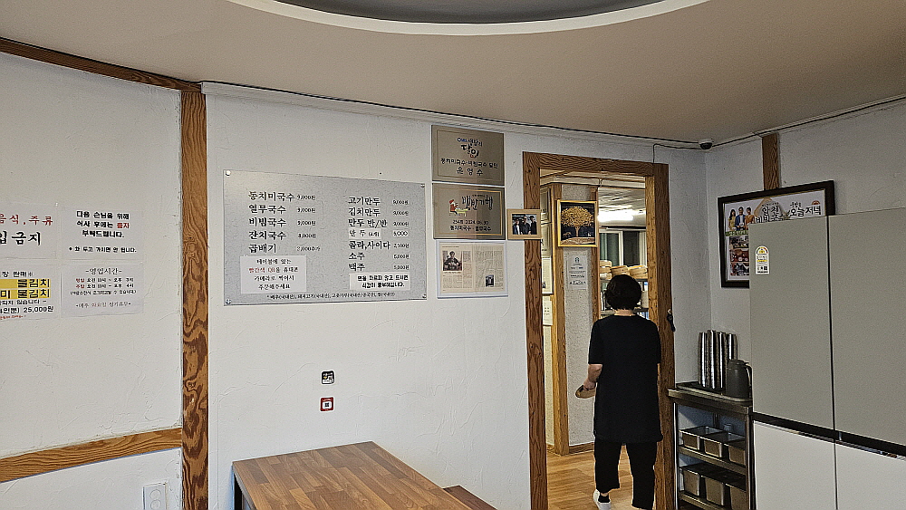 고모리 한 복판쯤에 있는 이집은 방송에서 보던 것보다는 무척 한가해 보였다. 아무래도 비가 내리는 날씨 때문이리라. 우리는 이집의 시그니쳐 라는 동치미 국수가 아니라 비빔국수와 잔치국수를 주문했다. 이것도 날씨 탓이다. 비빔국수는 꼭 먹어봐야 했기에 을씨년스러운 날씨라도 주문할 수밖에 없었다. 그리고 만두도 주문했다. 가정집을 개조한 것 같은 분위기의 실내였다. 너무 조용하고, 아늑한 것이 정말 아는 사람 집에 방문한 느낌이었다. 비빔국수가 나왔다. 비주얼이 엄청 강렬한 붉은 빛이었다. 엄청 매워보였는데 막상 먹어보니 심하다 할 정도의 맵기는 아니었다.