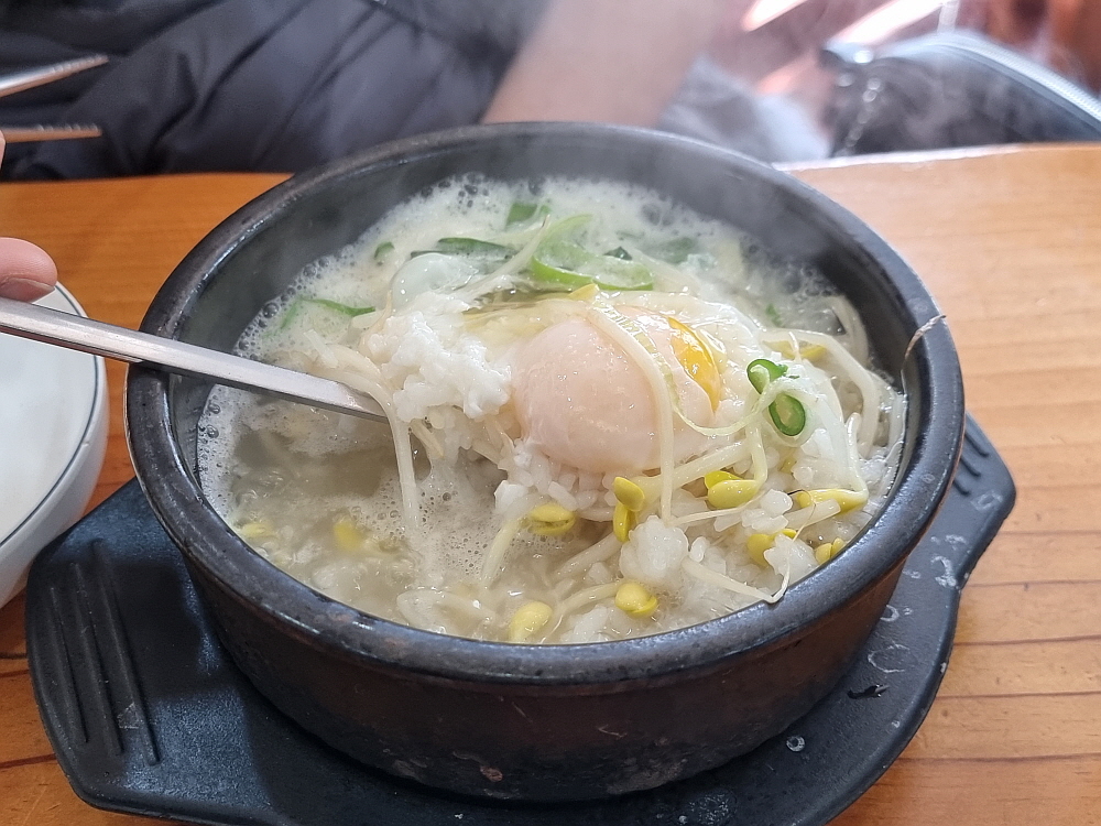 콩나물 해장국은 밥이 말아져 나오는 방식이었고, 양선지 해장국은 따로 나왔다. 콩나물 해장국에 꼭 들어가는 날 계란은 수란처럼 아예 국 그릇에 들어 있었다. 이것도 괜찮은 방식이리라. 어차피 손님이 계란을 깨서 국에 넣어야 하니 미리 넣어주는 것도 좋다. 양선지 해장국에 들어간 양이 허연색이라 조금 놀랐다. 대부분의 양은 좀 검은색이 돌지 않던가? 하지만 여긴 아주 부드러운 곱창 같은 양이 들어가 있었다. 선지역시 어찌나 부드럽던지 놀랐다. 이 정도면 물량이 잘 빠지는 장사되는 집이란 말이다.