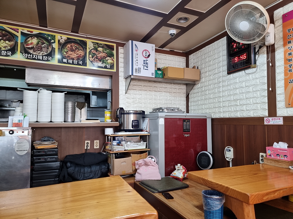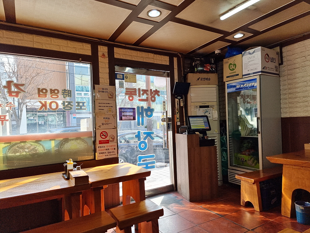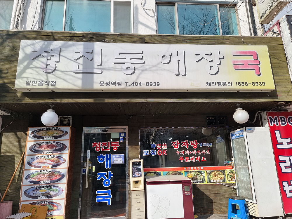 시험장은 강동구의 문정동이었다. 이 부근에 문정로데오라는 먹자 골목이 있긴 하지만 대부분 술집이라 아침에 문을 연 집을 찾기 힘들었다. 뒷골목은 완전 주택가라 아예 식당 자체가 별로 없었다. 그렇게 30분 정도 헤매다가 이집을 발견했다. 해장국이라는 간판을 보고 별 주저없이 그냥 들어갔다. 해장국의 특징은 아침 일찍 문을 연다는 것 아니겠는가? 과연 이집 문에는 새벽 5시부터 오픈한다는 문구가 써 있었다. '너무 일찍 여는 거 아닌가?' 싶은 생각이 들었다. 그 시간엔 출근하는 사람보다 전날부터 술먹은 취객이 더 많을지도 모르겠다.