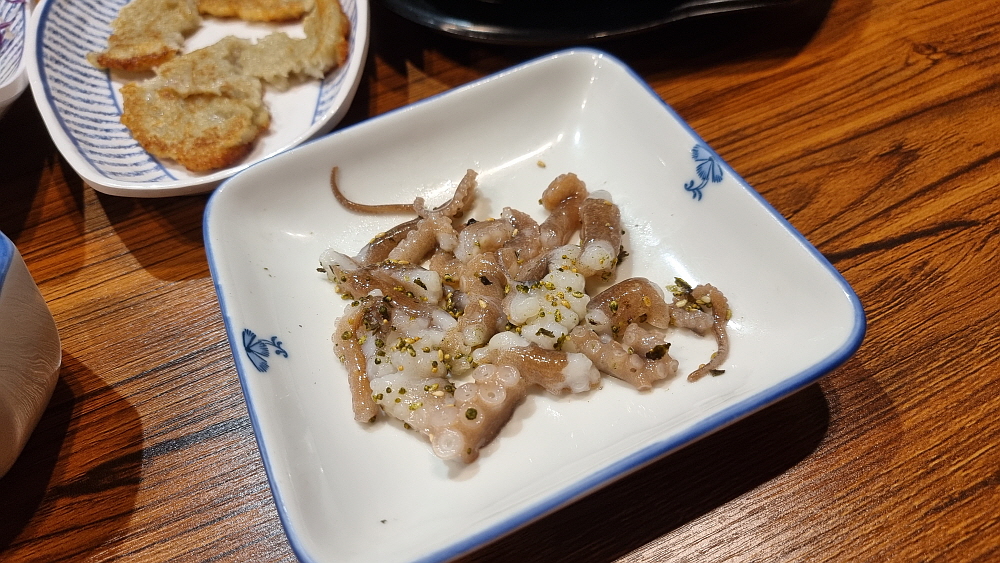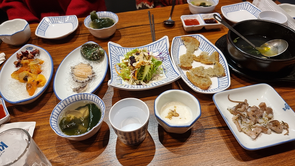 반찬 중에 압권은 역시 싱싱한 전복과 멍게였다. 이 계절에 더 맛이 오르는 해산물들이다. 거기에 싱싱한 굴까지 합류하니 회가 기다려지지 않는다. 이미 맘은 부자가 되어 있었고, 술도 술술 들어갔다. 제대로 된 회식의 서막이 오른 것이다. 횟집이 좋은 이유 중에 뭔가를 끓이거나 굽거나 할 필요 없이 내어주는대로 먹기만 하면 된다는 점이 있다. 그리고 음식이 식을까봐 빨리 먹을 필요가 없다는 것도 장점이다. 이것 저것 집어 먹다 보면 정작 메인디쉬인 회가 나왔을 때 제대로 먹지 못한다는 점은 단점이라 해야 할 것이다. 새로 인테리어를 바꾸고 횟집이 되면서 이런 컨셉을 준비한 모양이다. 고급진 회식 분위기 말이다.
