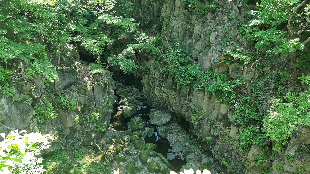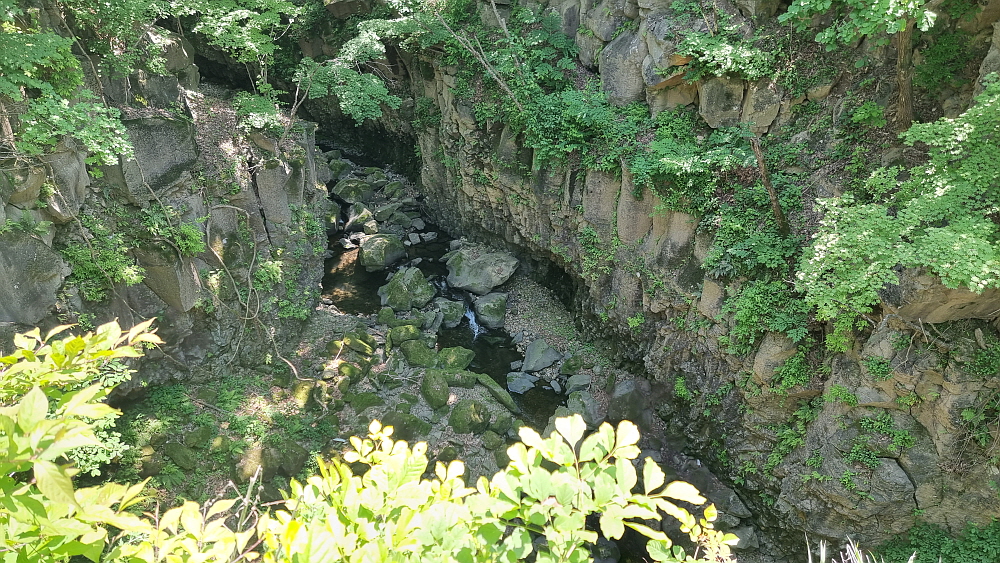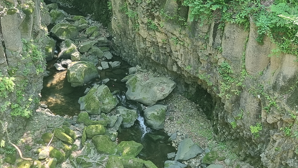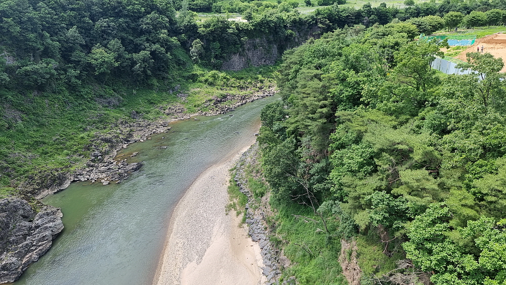 하지만 여긴 오기가 쉽지 않다. 비둘기낭도 예전엔 그랬지만 구라이골도 근처에 그럴싸한 도로가 없어 새로 만들어야 한다. 물론 구라이골 하나 보자고 수억의 돈을 들여 도로와 주차장을 만든다면 그것도 낭비일 것이다. 하지만 여길 와 본 사람들은 알겠지만, 구라이골은 그저 평범한 협곡이 아니다. 한탄강의 비경 중 한 자락이고, 인근에 새로 만든 캠핑장이나 출렁다리가 있다. 의아한 것은 출렁다리는 벌써 2년 전에 만들어졌는데 접근하는 도로나 주차장은 이제 막 공사가 진행 중이라는 것이다. 아마도 예산이나 행정적인 뭔가가 있었을 것이다.