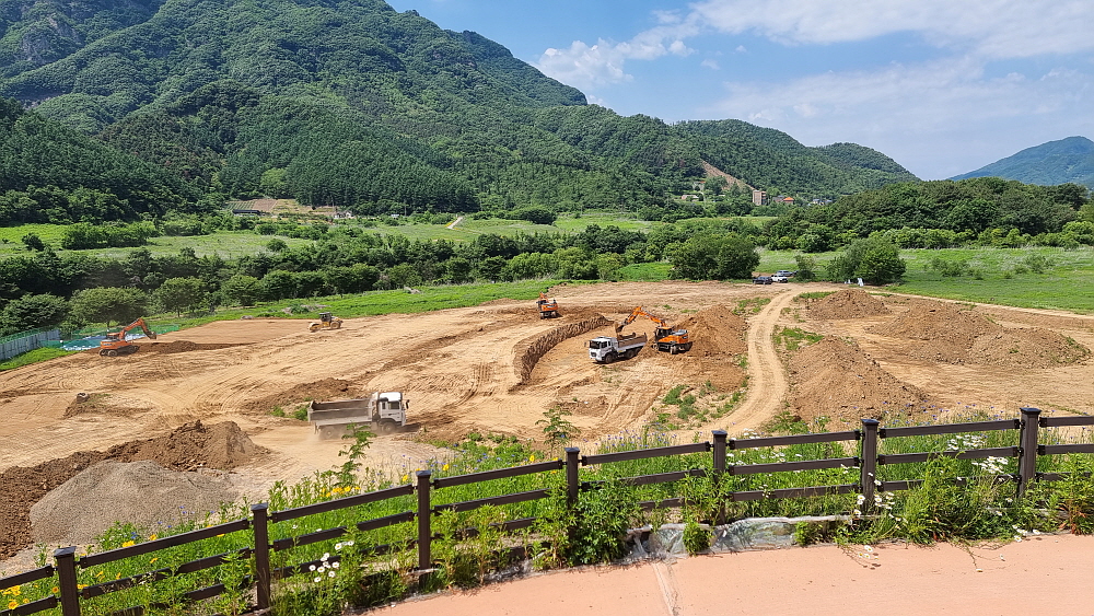 구라이골 캠핑장에서 구라이골과 출렁다리까지 가 보고 오려면 한 시간 반은 걸린다. 가는 길옆에는 주차장 조성공사가 한창이고, 다리를 넘어가면 공사가 끝났지만 운영을 하지 않는 자동차경주장이 보인다. 주차장 공사장 옆으로는 파크골프장 공사도 하고 있다. 이래 저래 운산리 일대는 포천의 관광 명소가 될 것 같다. 과거 한탄강 댐이 생기기 전에는 이 근처에서 천렵하고 야영하고 그랬던 한적한 시골이었다는 기억이 있지만, 이젠 국민 관광지로 새롭게 태어나는 것이다. 그곳이 바로 여기 구라이골이다.